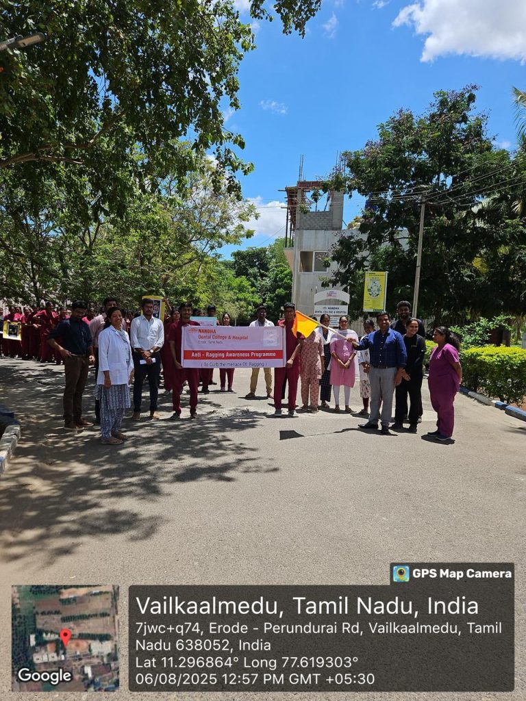 ANTI-RAGGING AWARENESS RALLY Campus rally was conducted holding placards and shouting slogans to curb the menace of Ragging on 06/08/2025. I & II BDS students had actively participated in the rally.